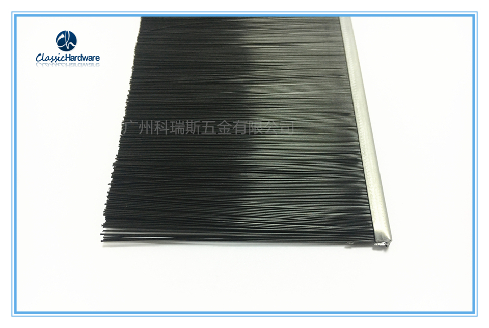 毛刷由三部分材料组成,铁皮(不锈钢) 铁线 毛料(PP PA PPT 羊毛 马毛 猪鬃等等),PP和PA常规色为黑色,目前我司已有颜色为黑色、白色、透明色、灰色、红色、黄色,一些特殊产品需要用到特殊的颜色,比如电梯毛刷,由于是装在底部,需要起到提示警醒的作用,一般会用比较鲜艳的颜色,如红色和黄色;另外机柜和线盒一般会用到白色和灰色;羊毛以黑色为主,马毛有花马毛、黑马毛,一般旋转门用的较多;猪鬃由于较硬,故一般用于机械设备。